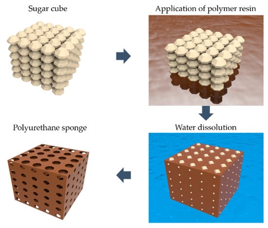 Fabrication of the polyurethane (PU) porous structure through the sugar templating process.