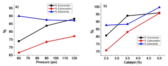 3.2.2. Effect of Pressure and Catalyst Concentration