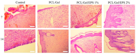 Hivechi A, Milan PB, Modabberi K, Amoupour M, Ebrahimzadeh K, Gholipour AR, Sedighi F, Amini N, Bahrami SH, Rezapour A, et al. Synthesis and Characterization of Exopolysaccharide Encapsulated PCL/Gelatin Skin Substitute for Full-Thickness Wound Regeneration. Polymers. 2021; 13(6):854. https://doi.org/10.3390/polym13060854