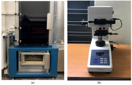 Coesfeld Magnus Impact testing system (a) Micro Vickers hardness tester (b).