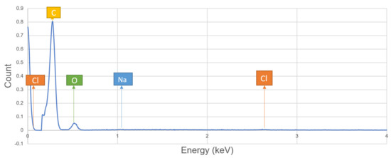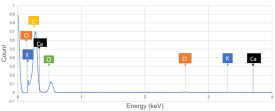 Spectrum analysis of the chemical structure of single sisal fiber hybrid composite fractured position obtained at an intensity of 4 keV.