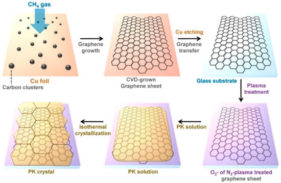 This work was finished with the contributions of six authors. S.C. designed and conducted whole experiments and wrote the manuscript. J.S.L. supervised the project and helped the production of plasma-treated graphene sheets. H.J. and S.P. helped the production of PK crystals on the plasma-treated graphene sheets. J.H.A. helped the production of graphene sheets using a CVD method. J.J. helped the design of this project. Every author edited the manuscript. All authors have read and agreed to the published version of the manuscript.
