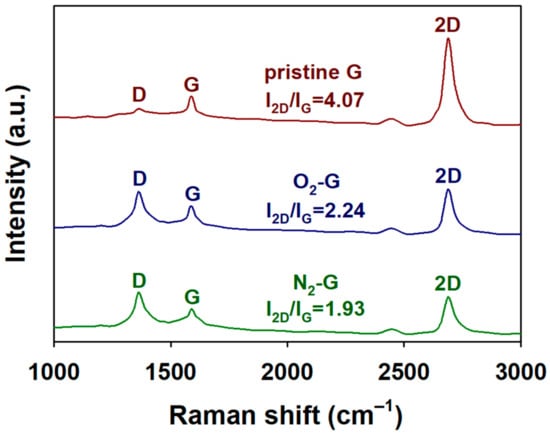 Raman spectra of pristine G, O2-G and N2-G.