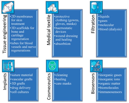 | Physical | Tunable mechanical, thermal and electric properties; UV-resistance, UV-protection and shielding; Radiodensity/radiopacity; Roughness and surface energy control; Wettability, swelling and solubility control; Porosity and permeability control (liquids, gases, water vapors). |