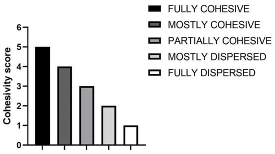 Reproduced Gavard–Sundaram Cohesivity Scale, used as a reference for the data-collected interpretations [2]. Graph obtained with GraphPad Prism 9.0.2 (GraphPad Software, Inc., San Diego, CA, USA).