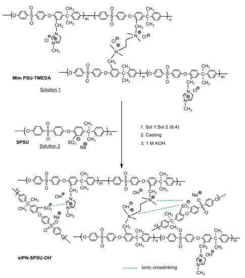Synthesis of semi-interpenetrating polymer network (sIPN)-SPSU-OH− membranes.