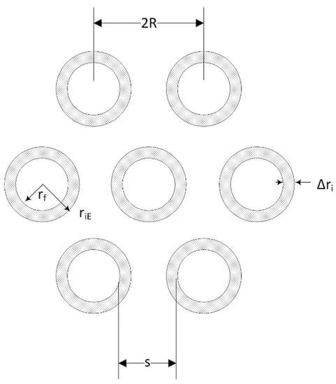 In the present investigation, assuming that the fibers are arranged on a hexagonal lattice, each fiber has a circular cross-section of the same diameter, as shown in Figure 2.