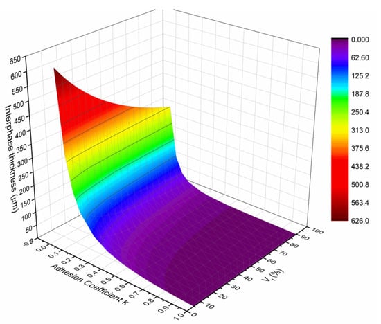 The lower the value of the adhesion coefficient, the more inefficient the bonding between the fiber and the matrix macromolecules. As the molecules of the matrix are weakly bonded to the fiber surface, the interphase thickness increases.