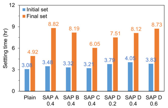 - The greater the cross-linking density (i.e., gel strength), the shorter the set times. Both the initial and final set times were overall delayed with an increased SAP content.
