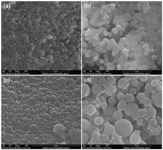The antimicrobial character of obtained spheres was analyzed using four types of reference strains, of which there were two Gram-negative strains (E. coli, Ps. aeruginosa) and two Gram-positive strains (S. aureus, E. faecalis). All considered bacterial species have a great biomedical impact, being involved in community and nosocomial infections [,] while developing increased antibiotic resistance rates in the last decades [,].