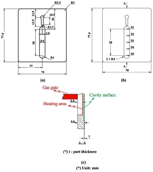 - Chen, S.-C.; Chien, R.-D.; Lin, S.-H.; Lin, M.-C.; Chang, J.-A. Feasibility Evaluation of Gas-Assisted Heating for Mold Surface Temperature Control during Injection Molding Process. Int. Commun. Heat Mass Transf. 2009, 36, 806–812. [Google Scholar] [CrossRef]