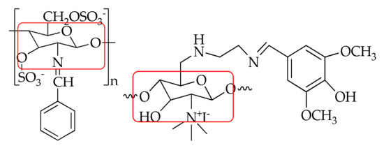 - Nadia, Q.H.; Mohsin, O.M.; Luqman, E.M. Synthesis and Biological Evaluation of Three New Chitosan Schiff Base Derivatives. ACS Omega 2020, 5, 13948–13954. [Google Scholar]