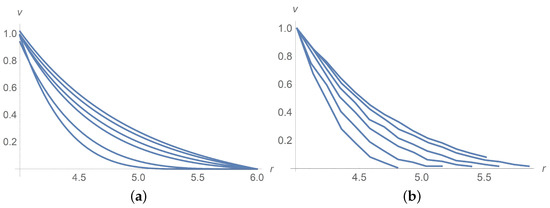 Approximate solutions of the system (43)–(50) can be obtained by regularization [36]. Given a small positive , we substitute the dimensionless invariant I in (44) and (45) by , where