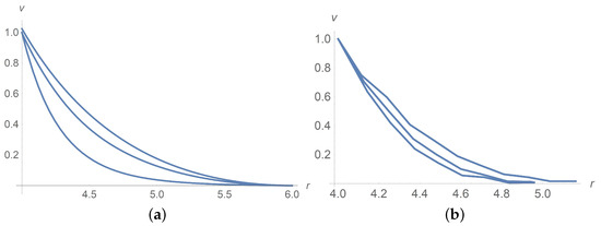 The concentrated emulsion obeying Equation (53) was considered in [9] with 22 [Pa] and [Pa]. Given the angular velocity [rpm] of the rotating inner cylinder, we calculate that . We consider the same fluid as in [9], hence one can define the consistency and the yield stress as follows: