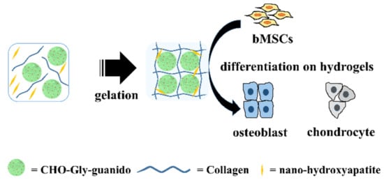 The process of using the flexible crosslinking nature of glycogen to produce a nanohydroxyapatite/collagen scaffold for the differentiation of bone and cartilage tissue. Reprinted with permission from Zhang et al. [83]. Copyright © American Chemical Society.