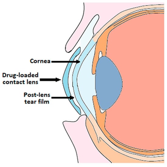 The incorporation of the drug into the lens matrix favors a prolonged release of the active principle towards the post-lens tear film in contact with the cornea, where the drug has to penetrate (Figure 1).