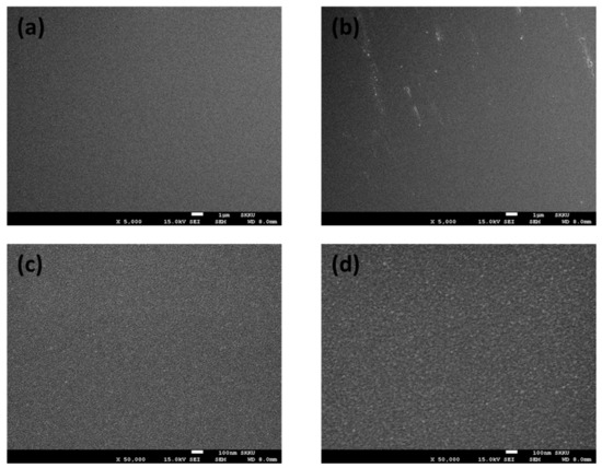 FE-SEM images of pristine and hybrid membrane (a,b) SPAES-140 and (c,d) SPAES-140-PEI-3.