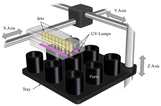 Basic scheme of a PolyJet jetting operation.