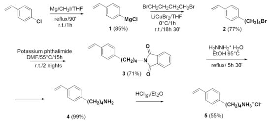 2.2. Synthesis of 4-(4-Amminobuthyl)styrene Hydrochloride M5 (5)