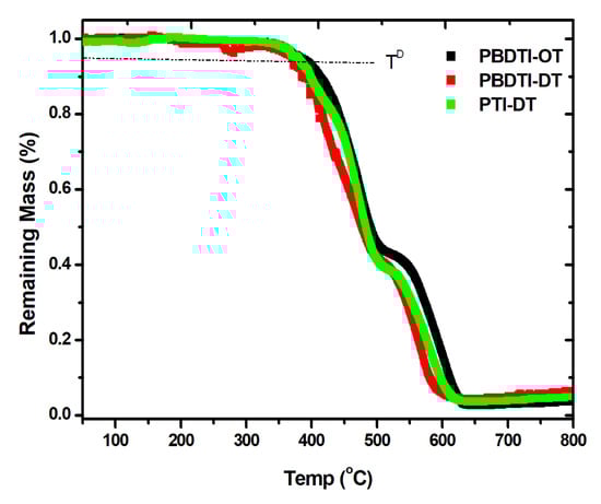3.3. Thermal Properties of PBDTI-OT, PBDTI-DT and PTI-DT
