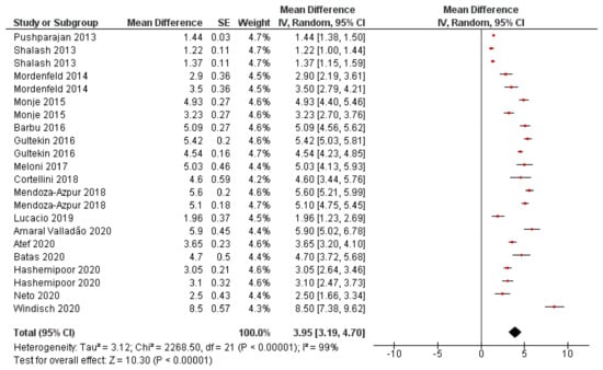 This systematic review and meta-analysis possess some strengths which differentiates it from previously published reviews. The registration of the research design in PROSPERO, prior to the beginning of the search, warrants that it has been shown to be associated with increased review quality [42]. Strict inclusion criteria, such as the need for a previous and follow-up CBCT and the exclusion of all the studies with clinical conditions that could alter the results such as immediate implant placement, simultaneal sinus lift, or socket preservation make the results more reliable. In addition, a thorough and rigorous analysis of the risk of bias and methodological quality of the studies included was carried out. As a result of all these methodological premises, a high level of significance (p < 0.001) was obtained, even when the random-effects model was applied.