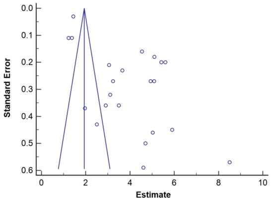 - Egger, M.; Davey Smith, G.; Schneider, M.; Minder, C. Bias in Meta-Analysis Detected by a Simple, Graphical Test. BMJ 1997, 315, 629–634. [Google Scholar] [CrossRef] [PubMed]