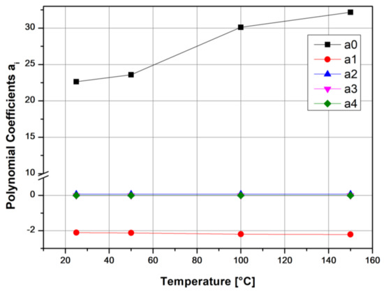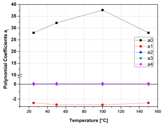 Thus, the model of Equation (2) was applied at four different reference temperatures; namely, 25, 50, 100 and 150°. Results obtained for all polynomial constants, as obtained by the approximation performed by the software Microcal ORIGIN 9.0, are given in Table 2. The first four constants of Equation (2) are plotted against reference temperature in Figure 6.