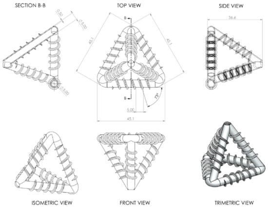Meanwhile, for the vascular network system, De Nardi et al. (2020) proposed mini-vascular networks (MVNs) as an alternative for the vascular method. The MVNs considered in this study were 3D-printed tetrahedral units (TETs) of interconnected hollow ligaments that had a characteristic dimension (i.e., maximum ligament length) approximately twice the size of the maximum aggregate particle size of the cementitious composite. A tetrahedral shape is also advantageous because the ligaments are straight between the anchor points (apices), which means the ligaments are more likely to break when crossed by a crack (see Figure 2) [25].