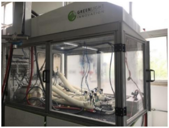 The platform for the durability cycle test of the fuel cell stack is FCATSTMG500, which is produced by the Greenlight Innovation Corp. (Burnaby, BC, Canada) which is shown in Figure 1.
