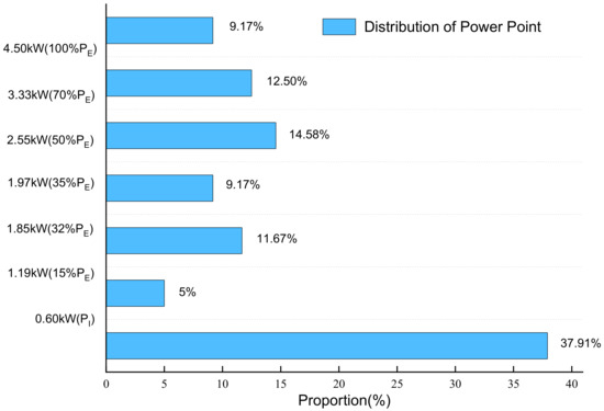 According to the durability test loading conditions in Section 2, the power distribution can be obtained. The distribution of load power is shown in Figure 4.