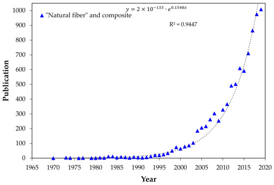 Publication by year for “Natural fiber and composite” according to the Scopus database [13].