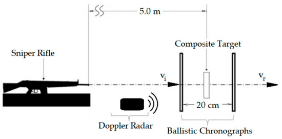 Schematic diagram of the setup arrangement at the Military Institute of Engineering (IME) for composite standalone ballistic test. Adapted from the work in [5].
