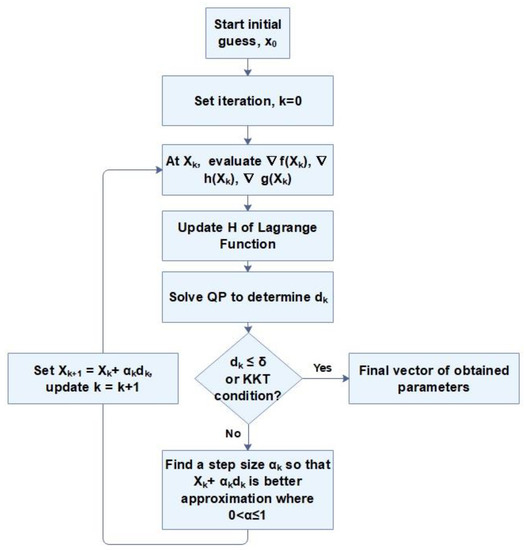 The iterative flowchart of the quadratic programming algorithm (SQP) method [38].