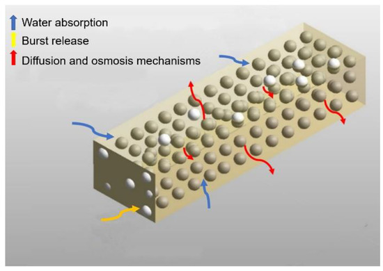 Usually, drug-release mechanisms from the polymer carriers include diffusion, degradation, swelling, osmosis, etc. Each of these phenomena can lead to a specific release of the drug from the carrier [7,8].