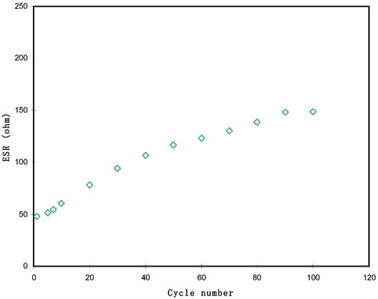 ESR pattern of the fabricated EDLC throughout the 100 cycles.