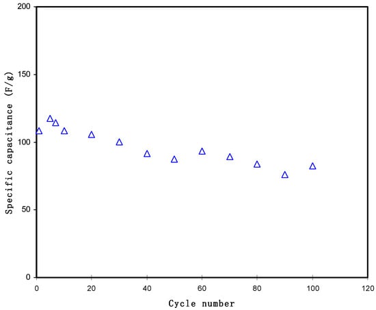 Specific capacitance versus cycle numbers for the EDLC over 100 cycles.