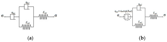Creep compliance fitting model: (a) the Burgers model; (b) the modified Burgers model.