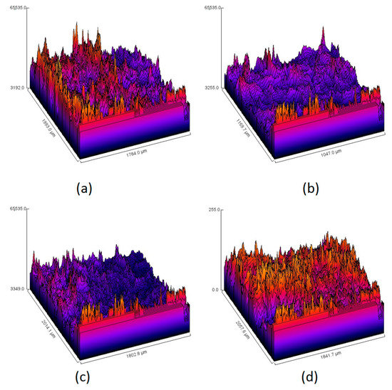 Figure 16 shows the samples roughness before (a, b) and after (c, d) incubation with blood. Both samples before the incubation are characterized by very high roughness due to the numerous open-structure pores and their sharp edges. After contact with human fluid due to the material coverage with blood components, the surface is significantly smoother, and the roughness has decreased. It can be observed that the interactions between the swelling medium and material are a little bit different, since it seems that the adhesion is higher in the case of the Gel-2 sample. The sample Gel-1 surface is much smoother after blood contact. The change in the materials surface can be explained by the electrostatic effects leading to the negatively charged molecules attraction and immobilization resulting in the artificial clot formation. Such behaviors are explained by the chemical structure of the CS, which contains free amino groups that interact with erythrocytes and platelets [9,10,31]. The incorporation of L-aspartic (C5) and L-glutamic acid resulted in the increase of NH2 moieties which, on the other hand, could lead to the increased electrostatic attractions between negatively charged blood components such as proteins and cells, which is crucial during blood clotting cascade and hemostasis restoration [9].