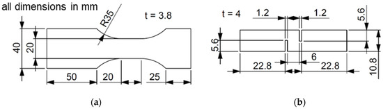 Specimen geometry for: (a) tensile tests and; (b) shear tests.