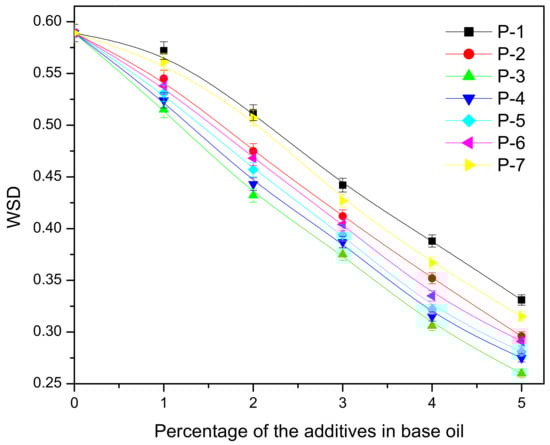 | Polymer Code | Base Fluids | WSD of Lubricant in mm at Different Additive Concentrations (% in w/w) | |||||