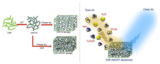 94. Adavan Kiliyankil, V.; Fugetsu, B.; Sakata, I.; Wang, Z.; Endo, M. Aerogels from copper (ii)-cellulose nanofibers and carbon nanotubes as absorbents for the elimination of toxic gases from air. J. Colloid Interface Sci. 2020, 582, 950–961. [Google Scholar] [CrossRef]