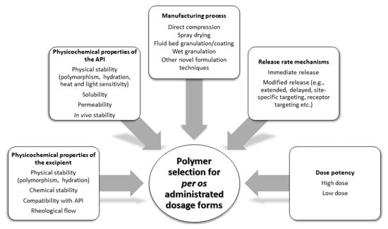 Parameters that are essential on selecting polymers for per os administrative dosage forms.