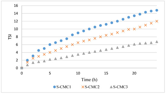 The profiles of TSI over time are shown in Figure 3. The data were highly reproducible, with a negligible standard deviation.