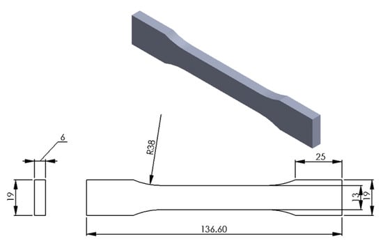 Geometry of the tensile test specimen according to ASTM D638 standard (all dimensions are in mm).