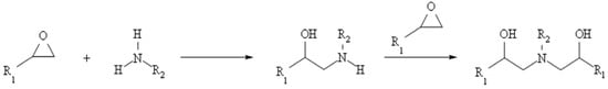 The procedure followed to prepare the HM hydrogels is based on the reaction of epoxy groups with amine hydrogens (see Figure 1), which is widely employed to cure epoxy resins [31]: