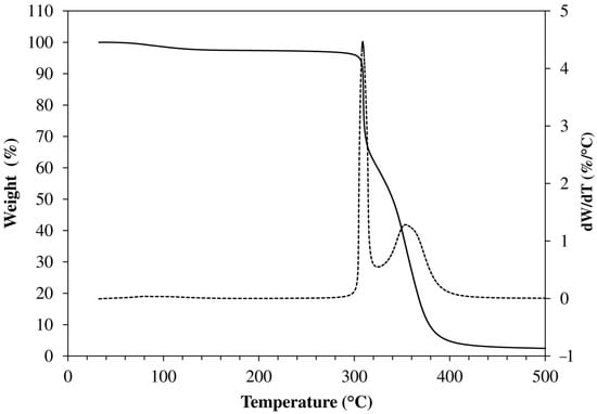 High-resolution thermogravimetric (TGA) analyses were performed using a TA Instruments (New Castle, DE, USA) Q500 thermogravimetric analyzer and an initial heating rate of 50 °C/min. A sample (ca. 15 mg) of dry specimen was heated in a 100 microliter open platinum pan from room temperature to 700 °C under a nitrogen atmosphere at a purge rate of 60 mL/min.