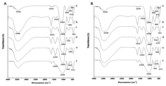 - Priya, G.K.; Padmaja, P.; Warrier, K.G.K.; Damodaran, A.D.; Aruldhas, G. Dehydroxilation and high temperature phase formation in sol-gel boehmite characterized by Fourier transform infrared spectroscopy. J. Mater. Sci. Lett. 1997, 16, 1584–1587. [Google Scholar] [CrossRef]