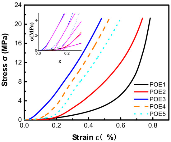 Compressive stress-strain curves of different POEs.