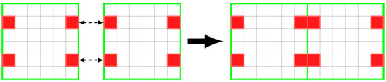 The authors overcame this problem by applying local density restrictions, in predetermined elements of the boundary of the initial admissible design domain (i.e., initial RUC). This restriction can be implemented by assigning density 1 (rigid material) to four elements on each face of the initial RUC (Figure 2). This density constraint allows, on the one hand, to create instability in the OT algorithm and facilitate the start of the process of updating the densities of the elements, and on the other hand to ensure that the initial points of density 1 in the iteration i = 0 serve as nucleation points, around which gradients form, leading the material to grow and ensuring kinematic connections between adjacent RUCs.