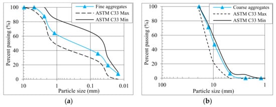 Granulometric analysis of (a) fine aggregates (b) recycled coarse aggregates.